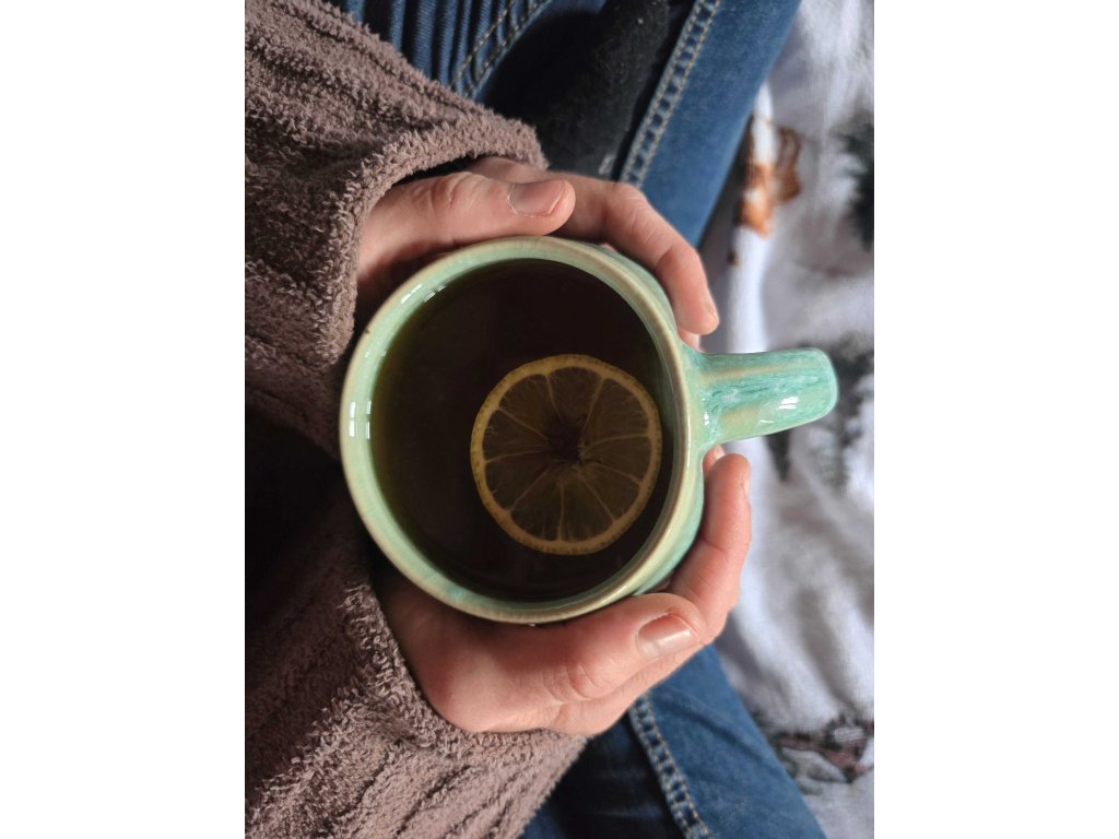 Uvnitř najdete transparentní glazuru s přirozeným přelivem, která se skvěle udržuje. Kübl je vypálený na 1280 °C, takže je odolný, pevný a připravený na každodenní popíjení čaje s citronem – od rána až do večera.