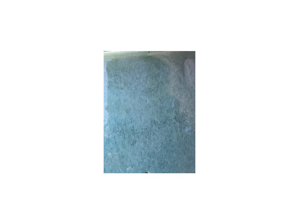 Jeho jedinečná modrozelená glazura vznikla spojením tradiční japonské glazury Oribe a mé vlastní reaktivní tyrkysové – dohromady tvoří neopakovatelnou barevnou krajinu, která připomíná mělké laguny s karibským odstínem.