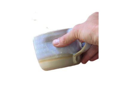 Cappuccino hrnek Moon Stone s ouškem a důlkem na palec. 350 ml, jemně bělavá glazura s modrým nádechem, ručně vyrobený, vhodný do myčky i mikrovlnky.