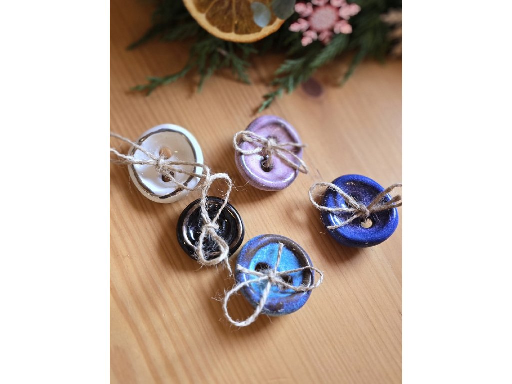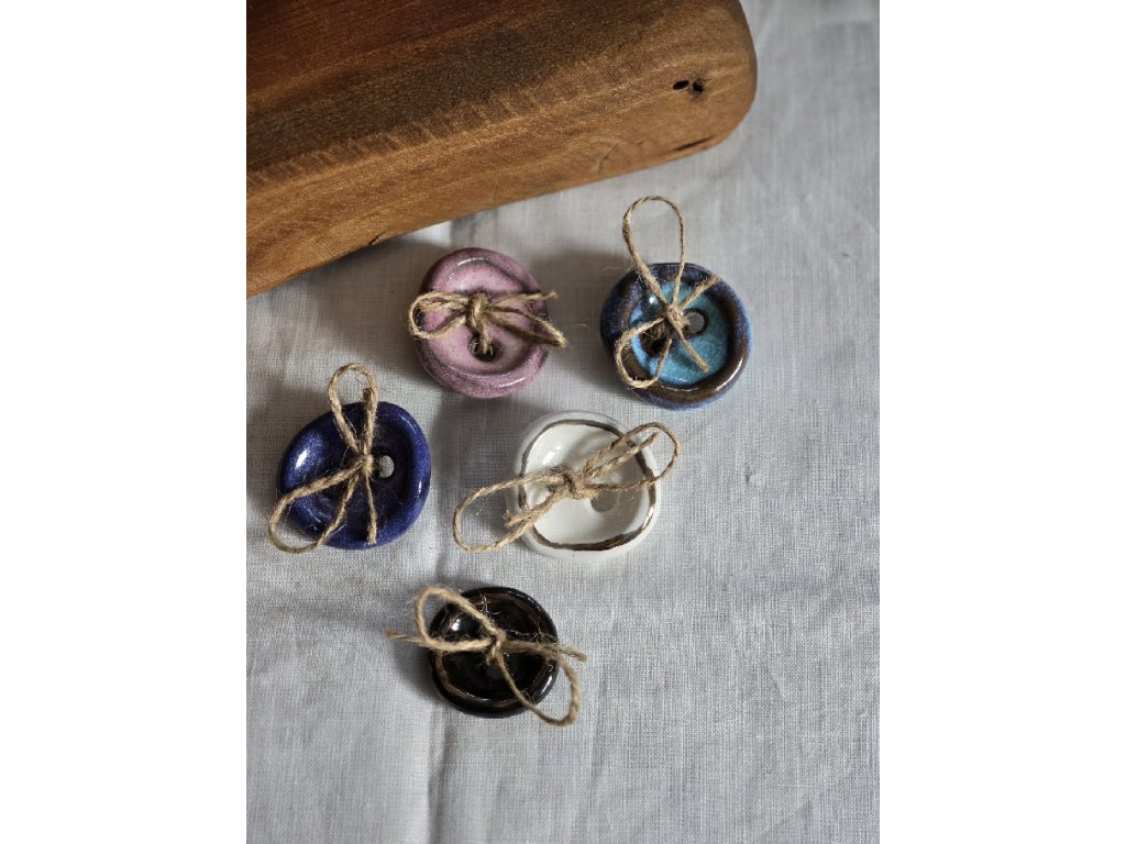 Každý knoflík je ručně vyrobený keramický originál, vypálený při vysoké teplotě a glazovaný do sytých barev. Vzniká v malých sériích a v této vánoční edici je dostupný jen v několika kusech od každé barvy.