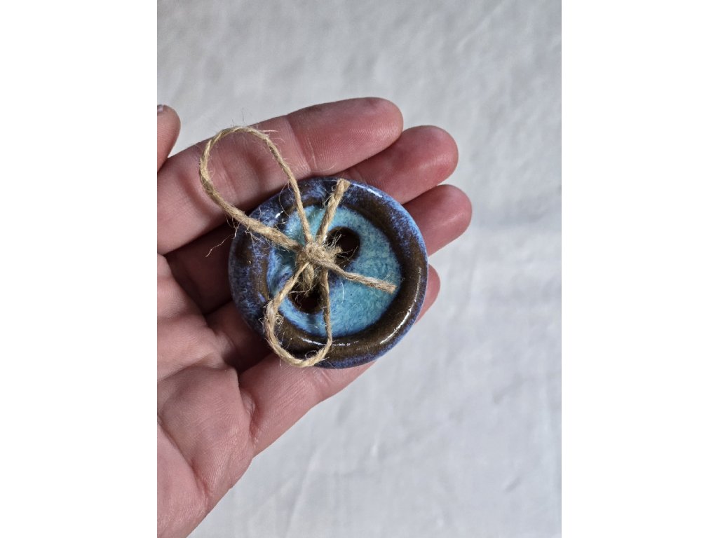 Keramický knoflík pro štěstí – ručně vyrobená drobnost z vysokopálené keramiky, vánoční edice.