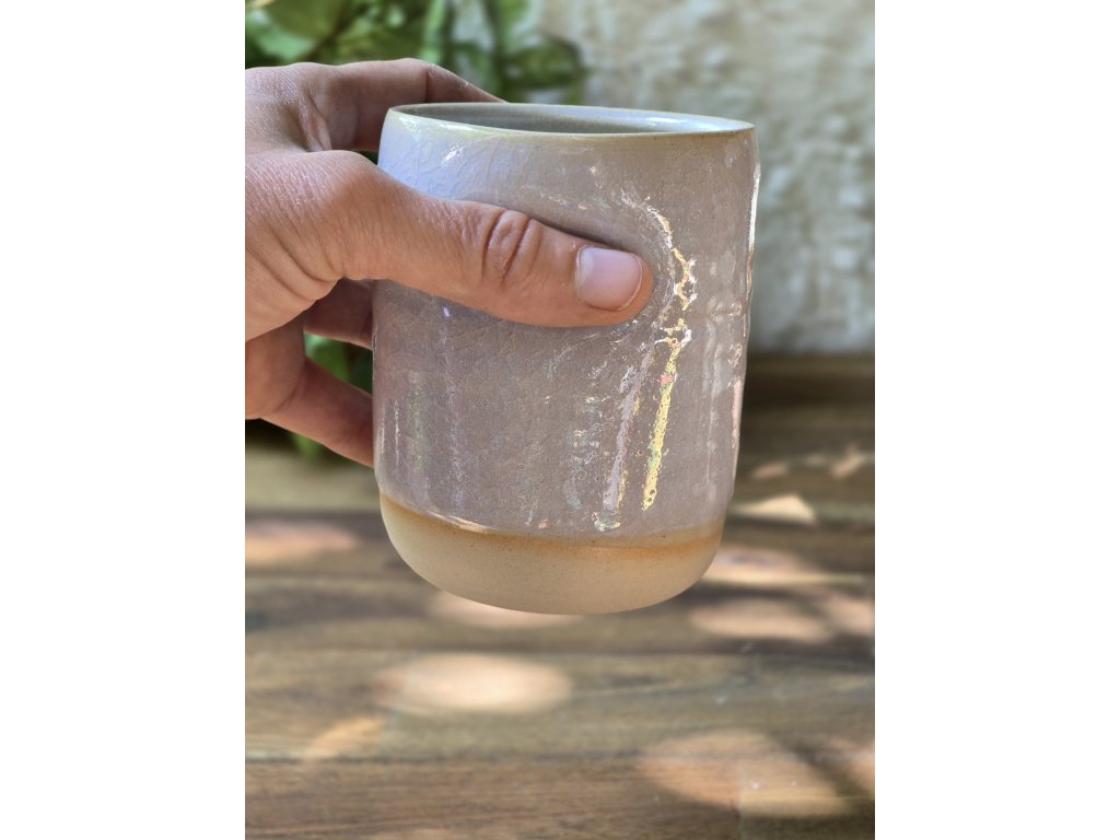 Tento ručně vyrobený kameninový kalíšek bez ouška o objemu 400 ml je ideální nejen na latte, ale i na letní sirupy s ledem a bylinkami. V zimě zahřeje v dlaních třeba voňavý čaj nebo svařené jablko.