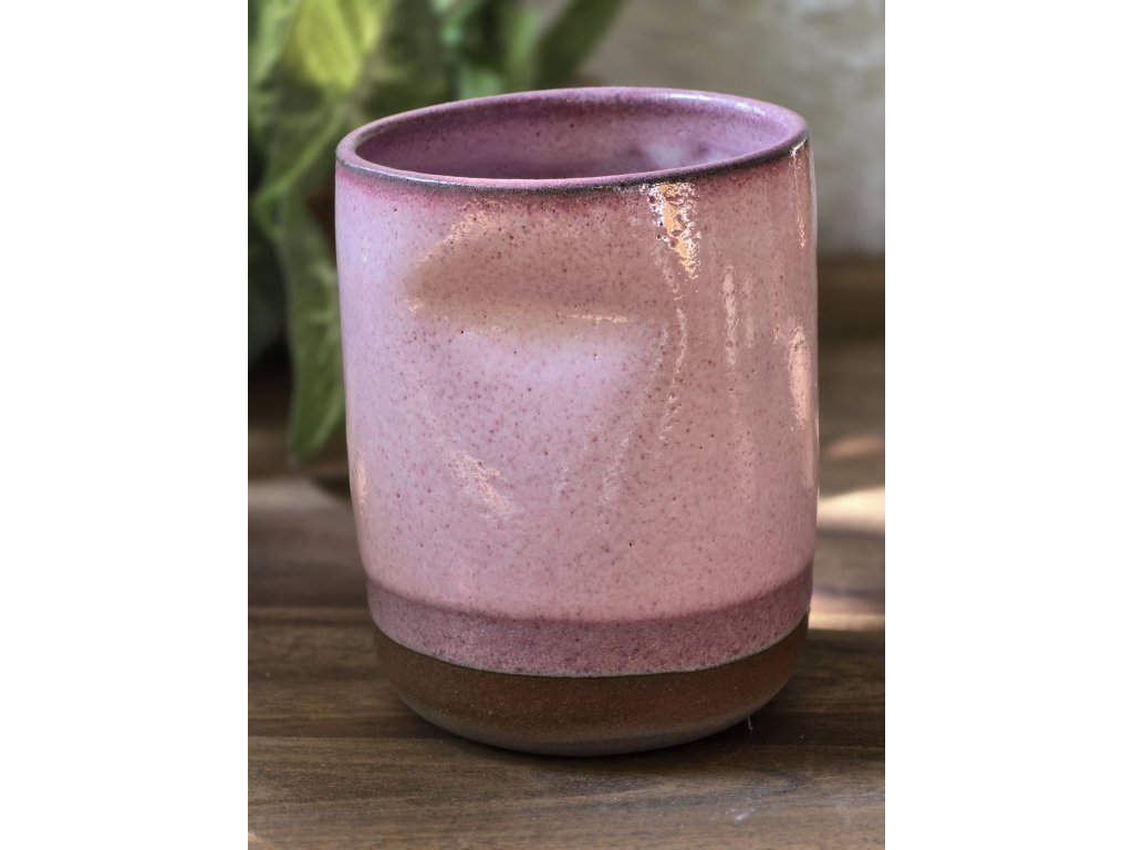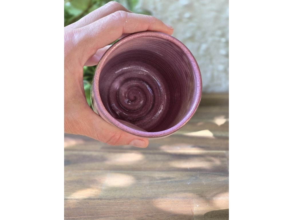 Každý kus je ručně točený a pálený při teplotě 1280 °C, což zaručuje jeho vysokou odolnost a dlouhou životnost. Povrch je jemně hladký, přitom pevný a příjemný na dotek. Kalíšek dobře padne do ruky i díky praktickému důlku na palec, který zvyšuje komfort při každodenním používání.