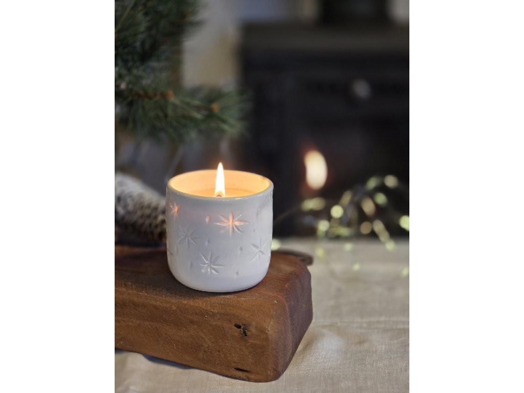 Porcelánová svíčka s prosvítajícími hvězdami a vánoční vůní