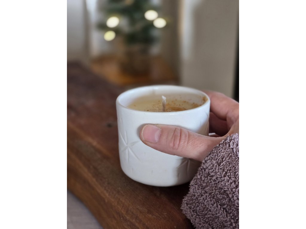 Vznikla ve spolupráci Soul of Clay × BarkaStore a kombinuje řemeslný porcelán s poctivou sójovou svíčkou v tradičně vánoční vůni.