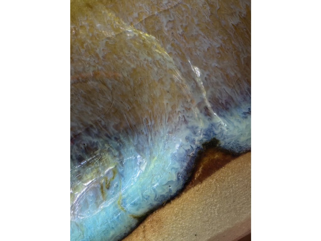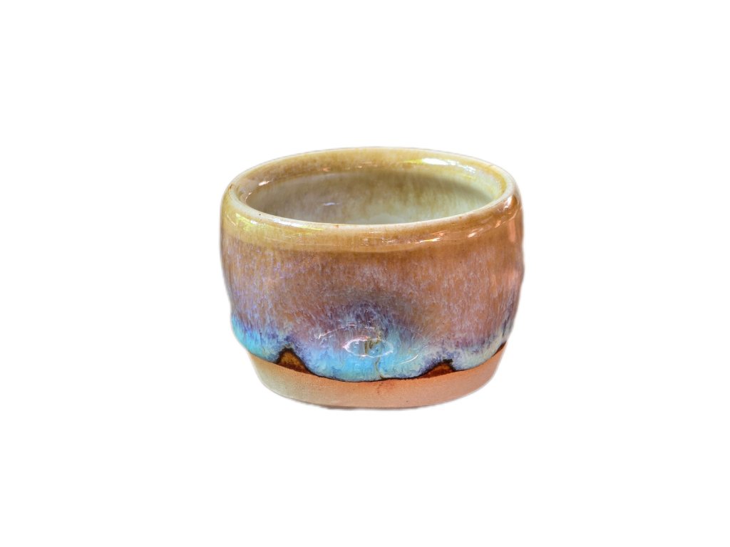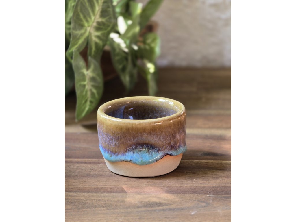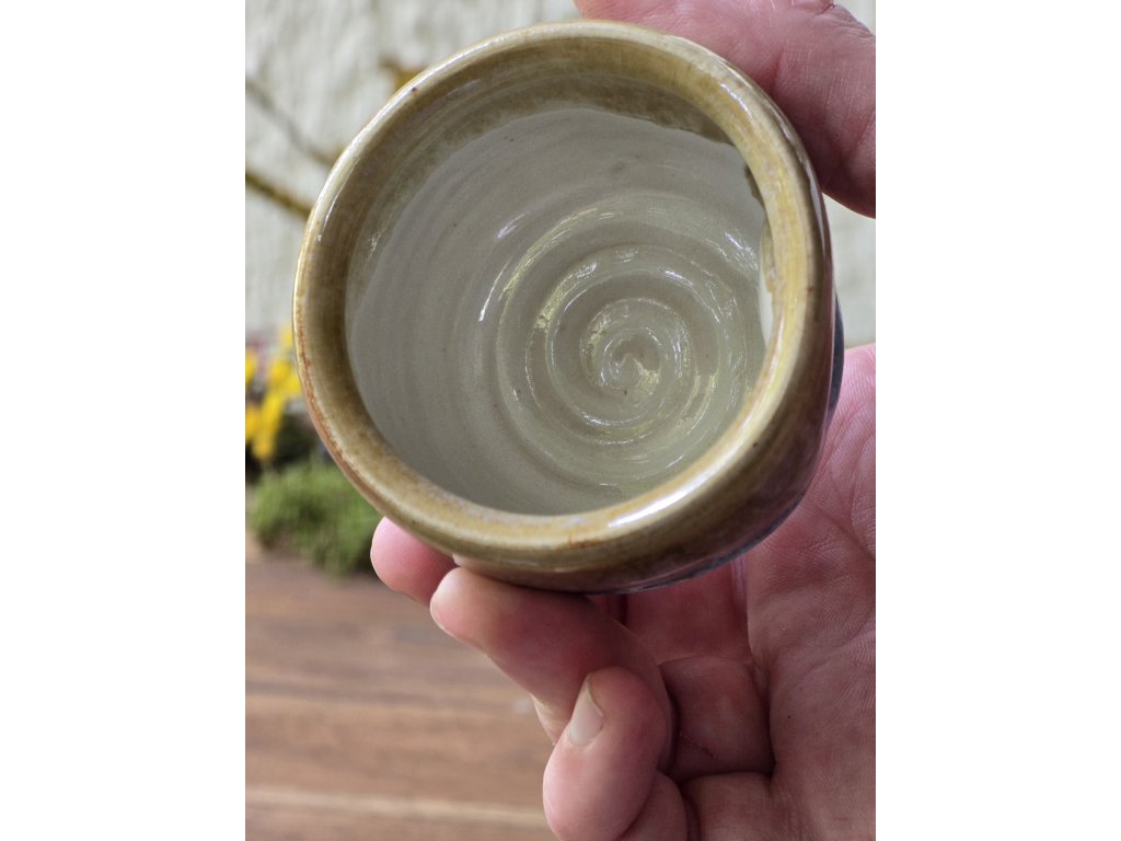 Reaktivní tyrkysová glazura s tenmoku základem, vhodný do myčky i mikrovlnky.