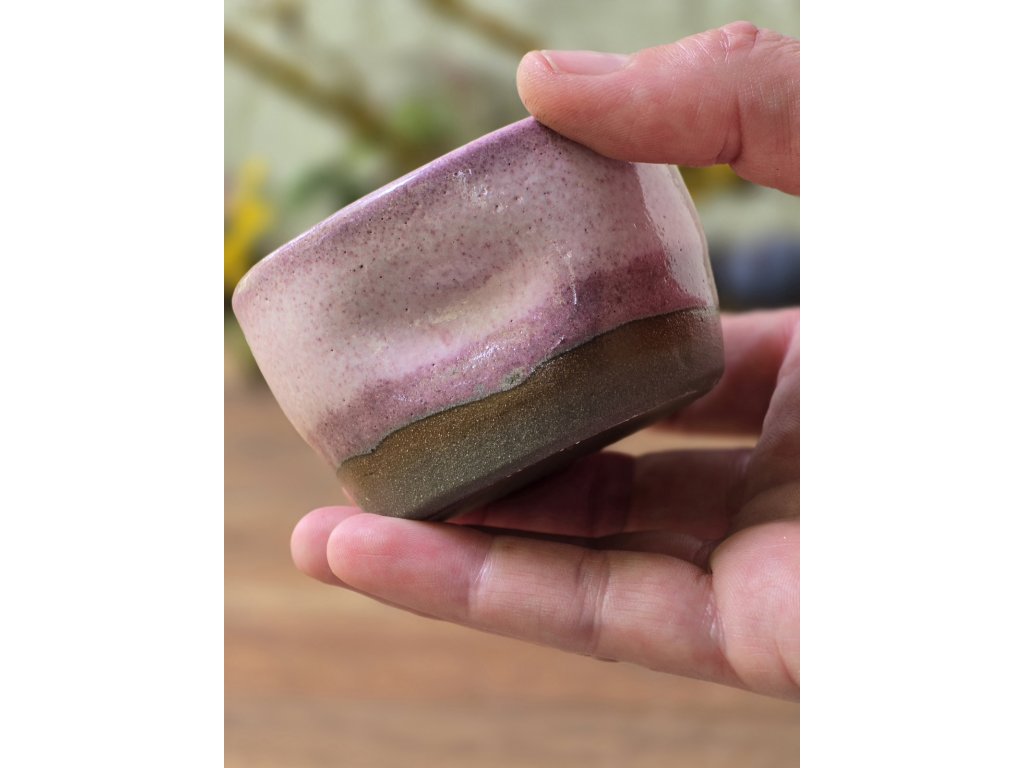 Decentní růžová glazura inspirovaná kvetoucí sakurou působí křehce a něžně, ale díky vysokému výpalu je pevná a odolná. Povrch je hladký a jemně lesklý, při denním světle získává měkký, přirozený nádech. Každý kus je originál – odstín růžové se může mírně lišit podle výpalu.