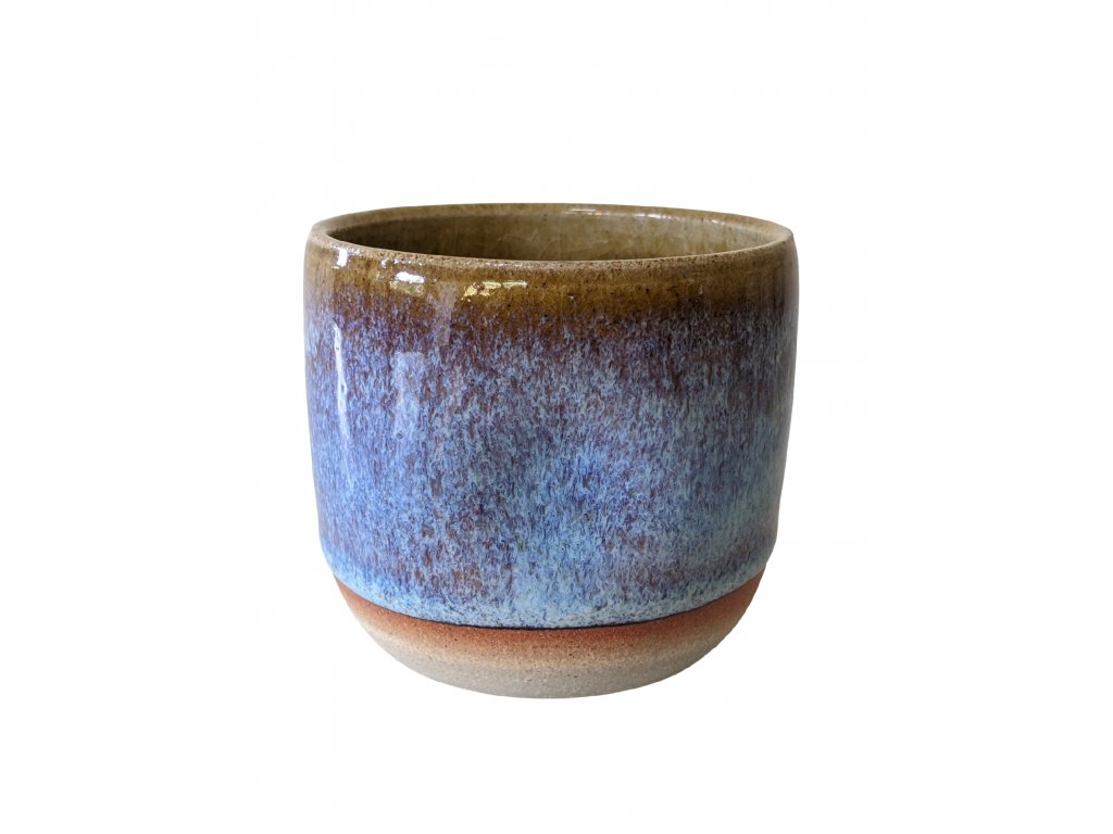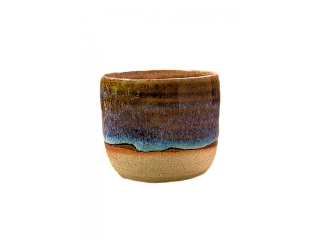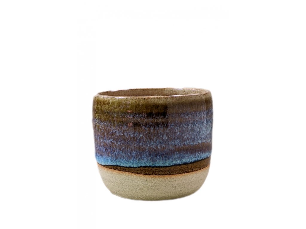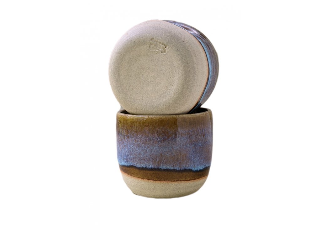 Šálek yunomi IceFall spojuje organický tvar, japonskou inspiraci a výraznou modrohnědou glazuru připomínající vodopád zamrzlý v pohybu. Kombinace lesklé glazury a přírodních barev vytváří dojem tekoucí vody a kamenů – každý kus je originál s neopakovatelným vzorem.