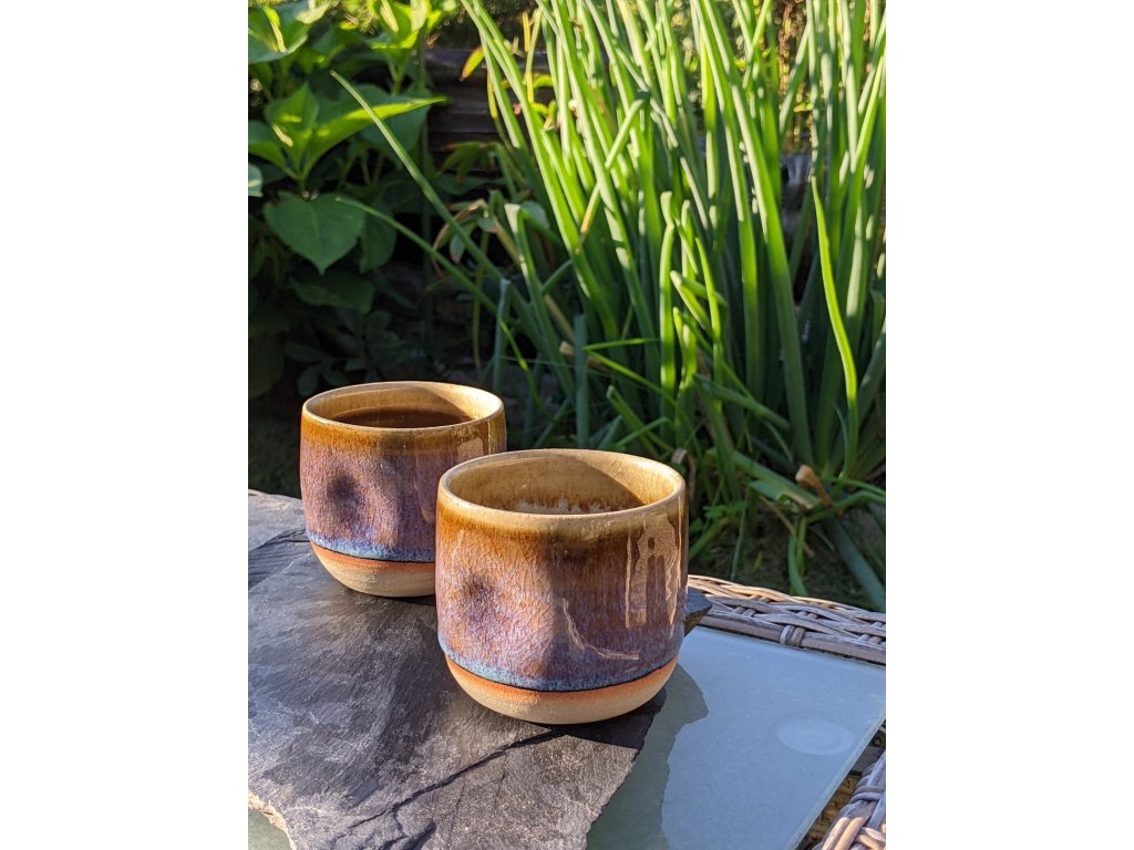 Upozornění: kamenina dobře vede teplo. Pokud jste zvyklí pít horké nápoje opravdu vařící, doporučujeme raději variantu yunomi s ouškem, která se drží pohodlněji – nebo si svůj set rovnou doplňte o větší hrnek, třeba litrový IceFall, nebo mi napište o dezertní talířek ve stejné glazuře.