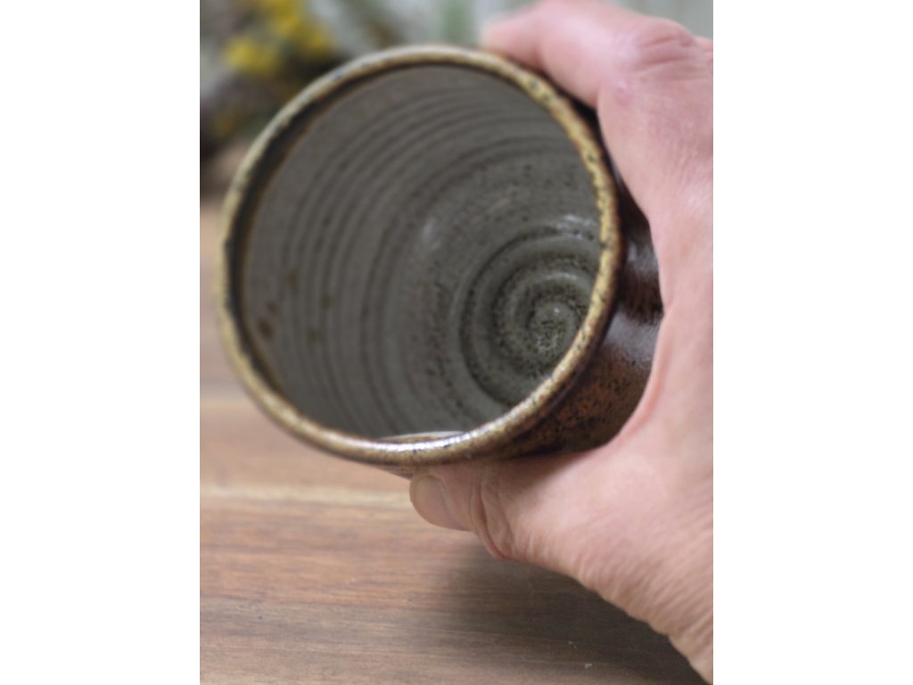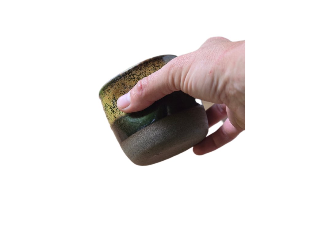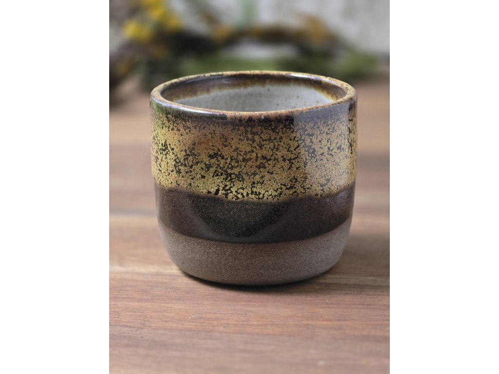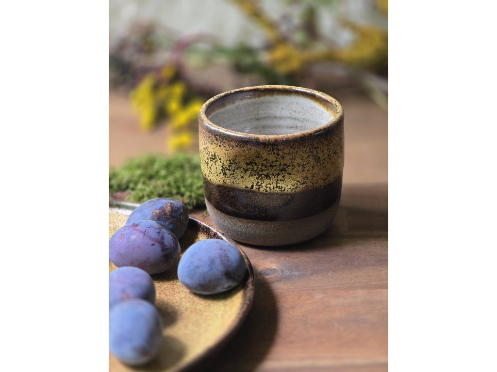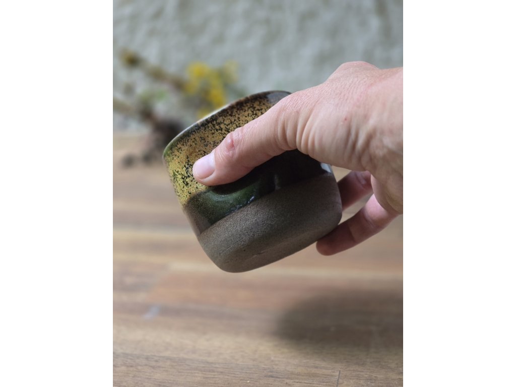 Kalíšek yunomi Leopard o objemu 200 ml je ručně točený kousek s osobitým charakterem. Tvar vychází z japonské tradice, ale výrazná mikrokrystalická glazura mu dodává moderní, až mužský výraz. Skvěle padne do ruky díky důlku na palec a ocení ho každý, kdo má rád poctivou keramiku, která má styl.